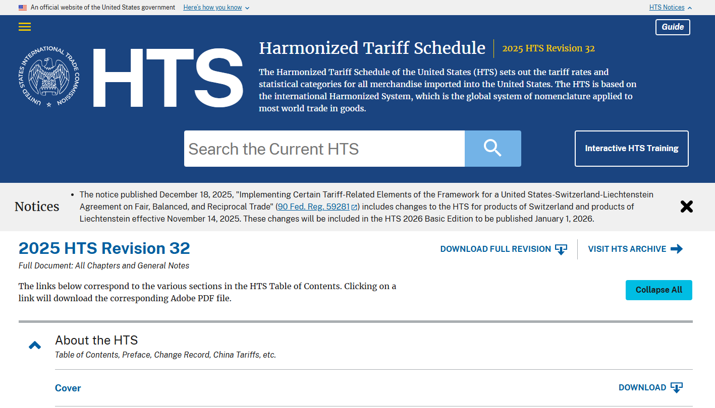 Trang web chính thức của Ủy ban Thương mại Quốc tế Hoa Kỳ: hts.usitc.gov. Tránh dùng các trang web thứ 3 không cập nhật vì biểu thuế thay đổi hàng năm.